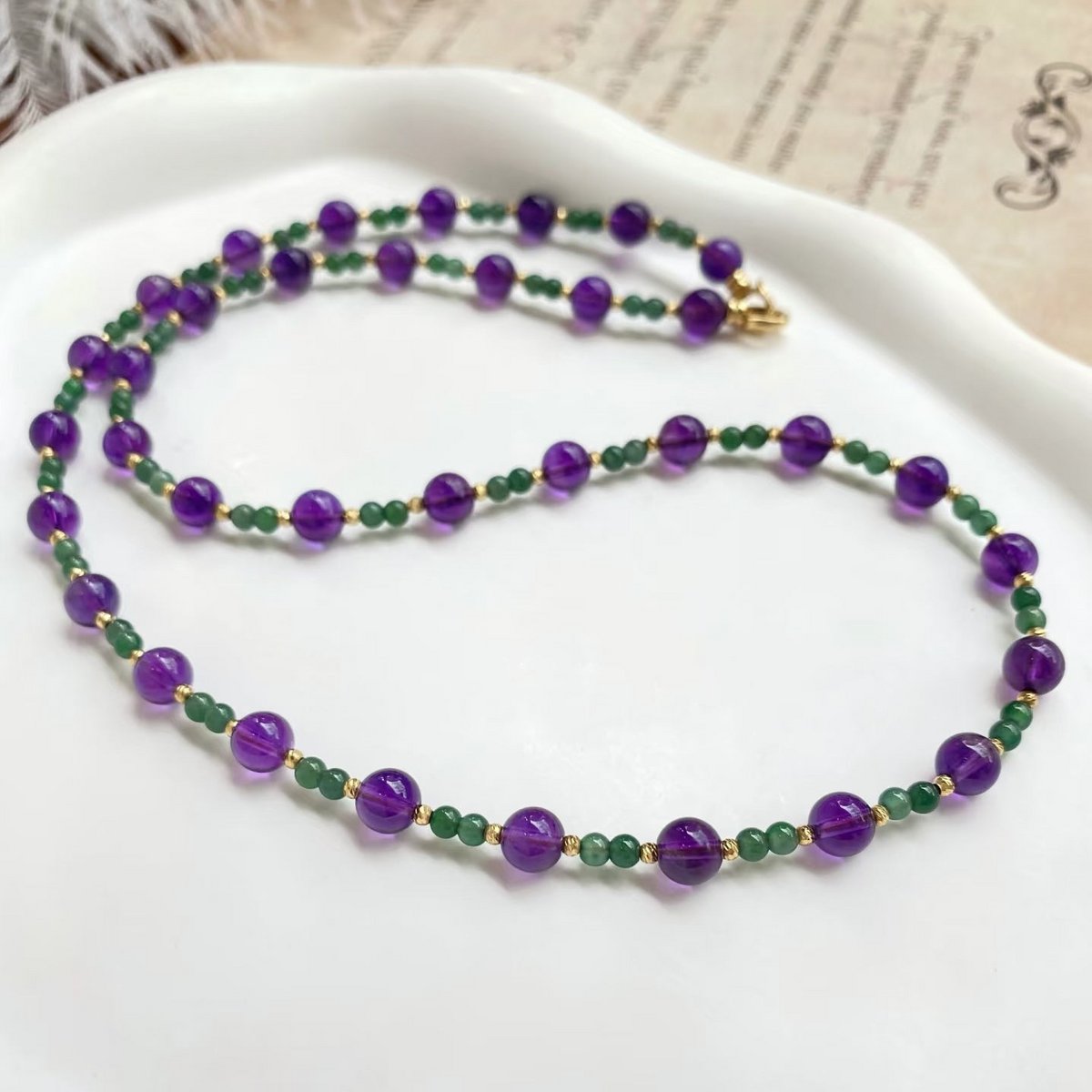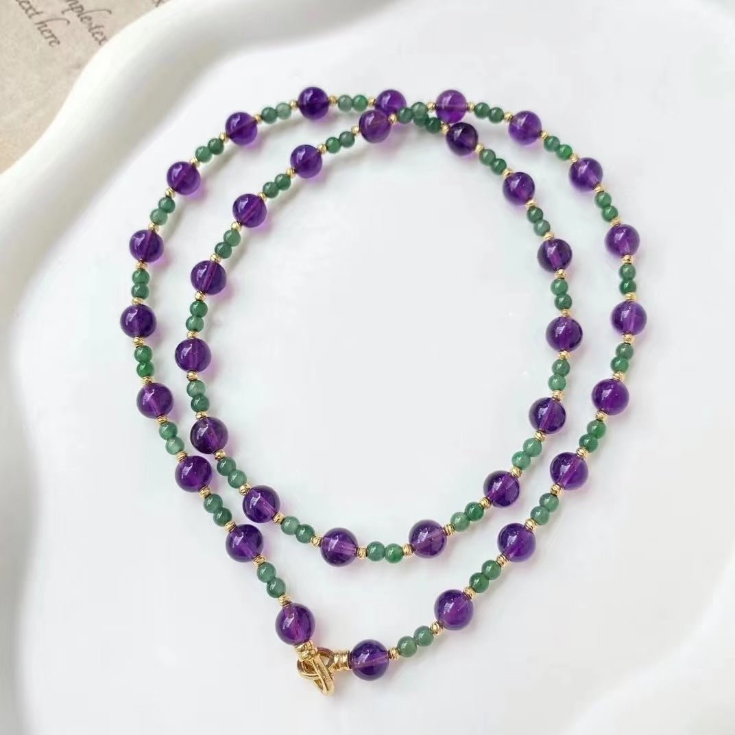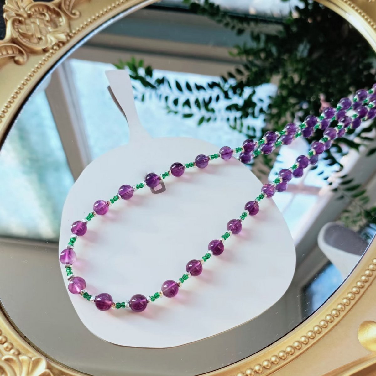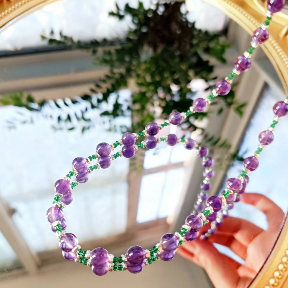 Deze Amethyst en Onyx ketting en armband set heeft een prachtige combinatie van 8 mm amethist - kralen gecombineerd met 2 mm gefacetteerde groene onyx - kralen. Deze opvallende set toont de diepe paars van echte amethist kristallen met het fascinerende groen van de onyx steen.