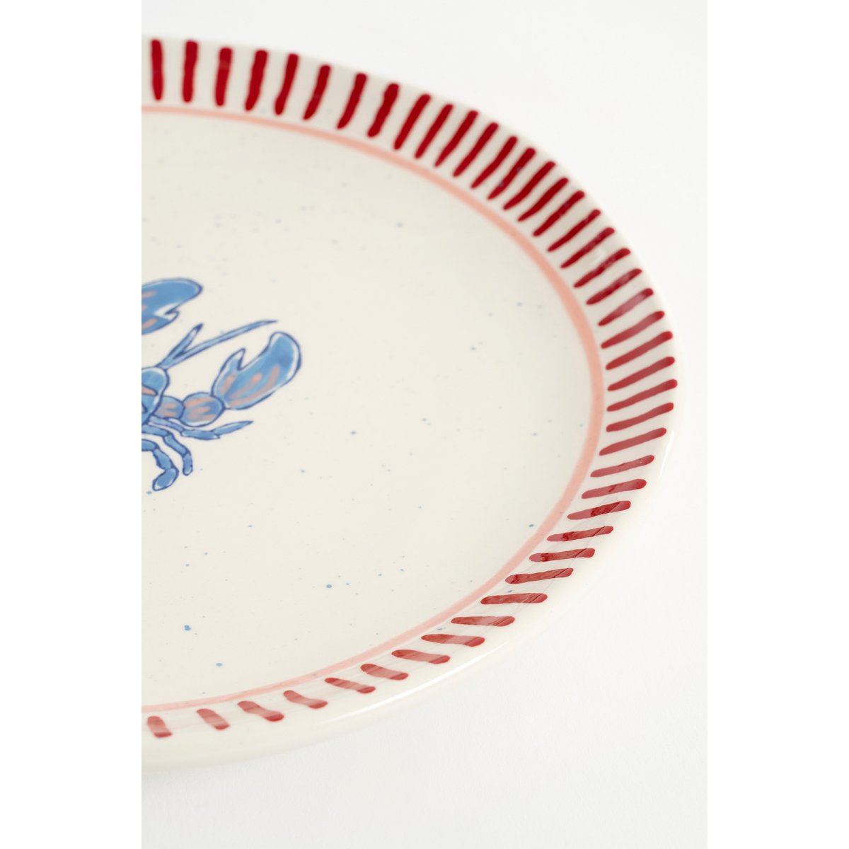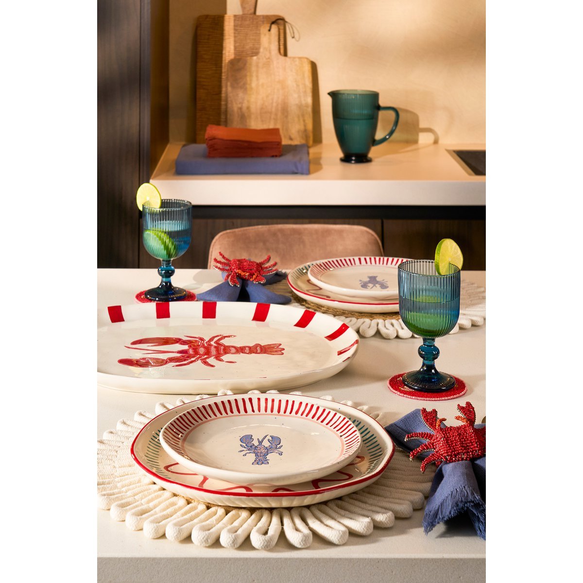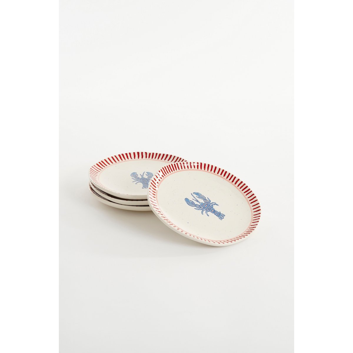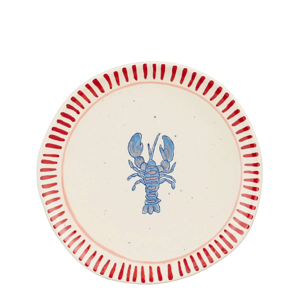 Geef je tafel een zomerse uitstraling met de Ariane ontbijtbordenset, bestaande uit vier stuks, van Mica Decorations. Elk bord is handgemaakt van stevig steengoed en heeft een frisse witte kleur met een vrolijke blauwe kreeftprint en een decoratieve rode rand. Deze borden zijn perfect om je ontbijt, lichte hapjes of zomerse gerechten op te serveren tijdens zonnige dagen.