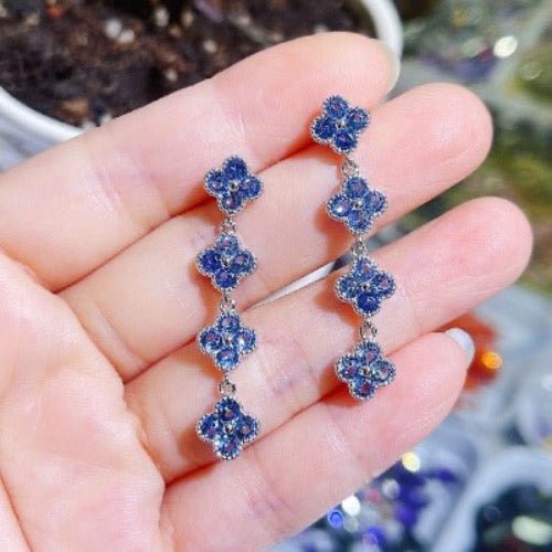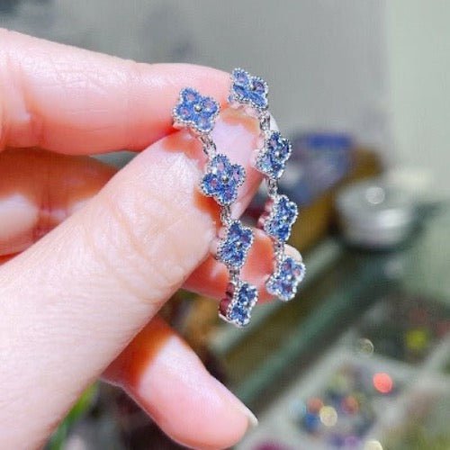 Longline Drop Oorbellen met Blauwe geluksklaver