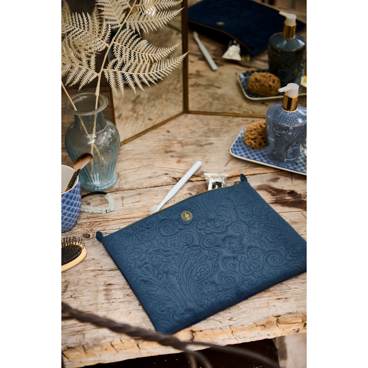 Liever een vierkante toilettas met iets meer ruimte voor je verzorgingsproducten, maar zonder concessies aan jouw stijl? Dan is deze luxe toilet pouch de oplossing. Naast praktisch is deze ruime, multifunctionele opberger ook een lust voor het oog. De toilettas is gemaakt van gewatteerd donkerblauw, vegan materiaal met een elegant bloemendessin voor een chique uitstraling. Neem je 'm mee in de bijpassende tote bag?