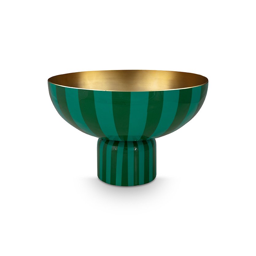 Verrijk je huis met deze gestreepte groene metalen schaal. Een prachtig woonaccessoire welke gebruikt kan worden op verschillende manieren. Vul de schaal bijvoorbeeld met fruit en gebruik hem als fruitschaal óf gebruik de schaal als dienblad op je salontafel. Met deze blikvanger kun je alle kanten op!
