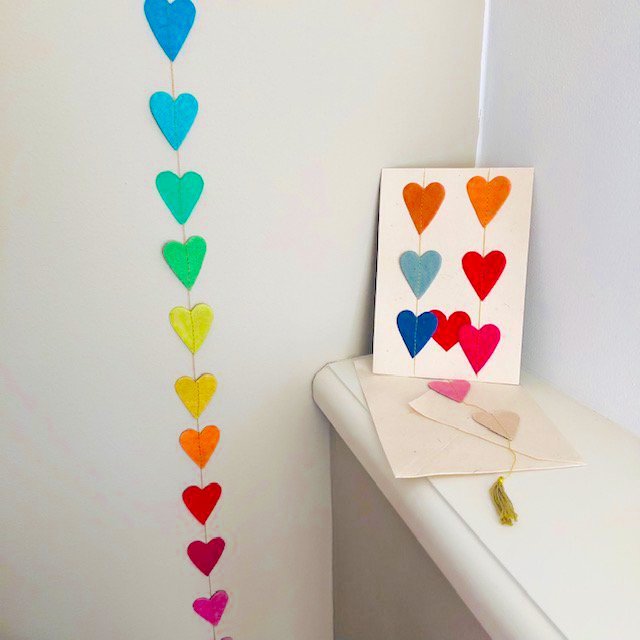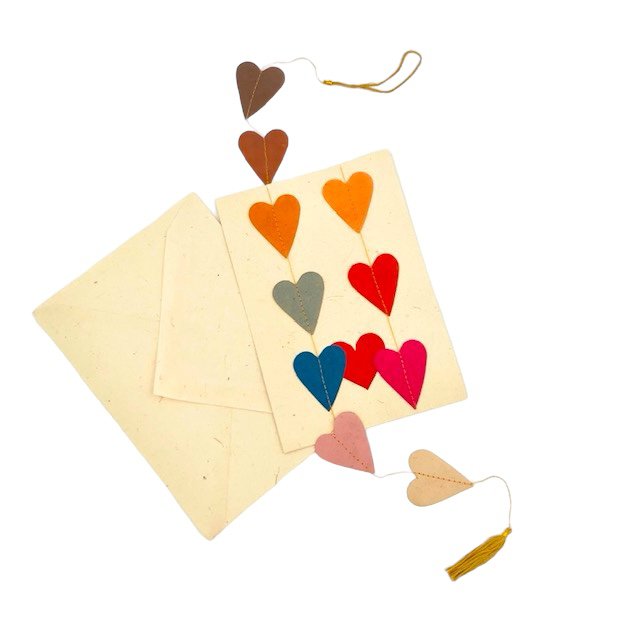 Een verrassende wenskaartenset met een kleurrijke hartenslinger. De combinatie bestaat uit kaart + envelop + verticale hartenslinger in meerdere kleuren. Deze slinger wordt om de kaart gewikkeld en je kunt hem gemakkelijk afrollen. Deze bijzondere slinger mag gezien worden. Leuk om te krijgen, nog leuker om te geven of versturen!