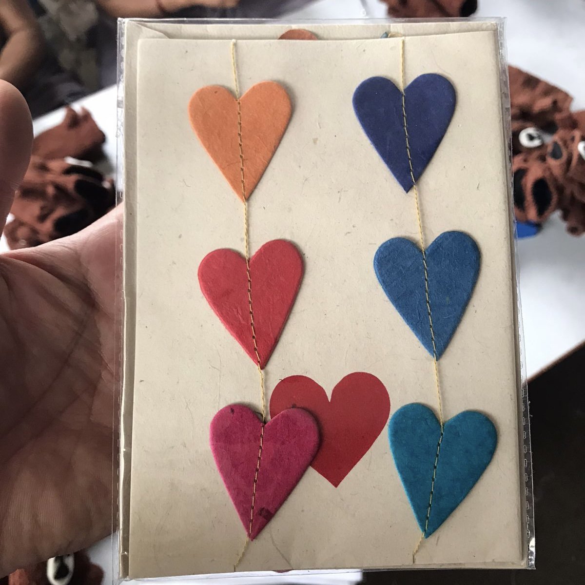Gemaakt van milieuvriendelijk papier - kaart + envelop H18x12,5 cm - hartenslinger met gouden stiksel lengte 115cm - verpakt in een recyclebare polybag.