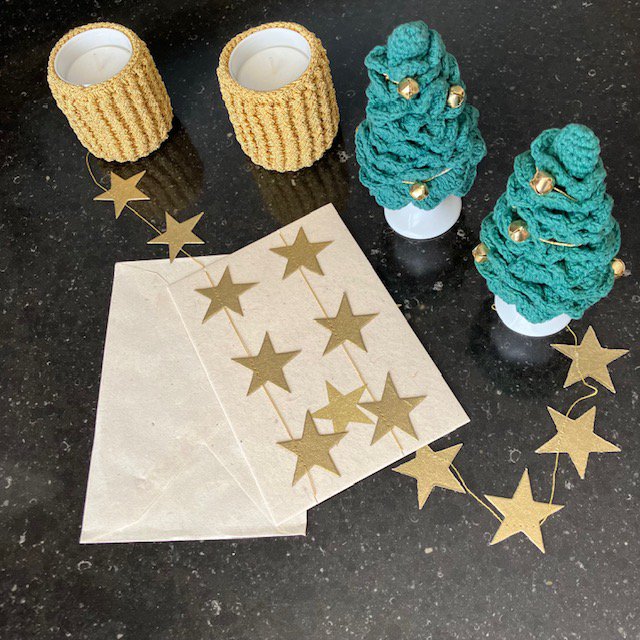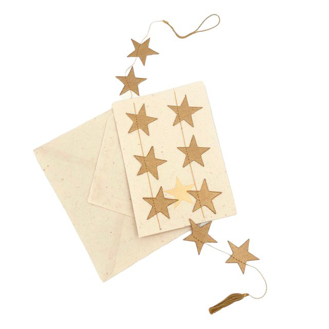 Een feestelijke wenskaartenset met een gouden sterrenslinger. De combinatie bestaat uit kaart + envelop + verticale sterrenslinger in goud. Deze slinger wordt om de kaart gewikkeld en je kunt hem gemakkelijk afrollen. Deze bijzondere slinger mag gezien worden. Leuk om te krijgen, nog leuker om te geven of versturen!