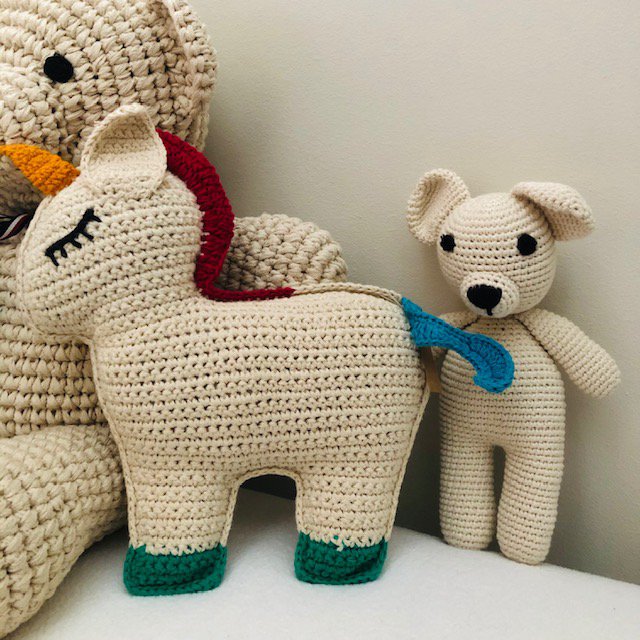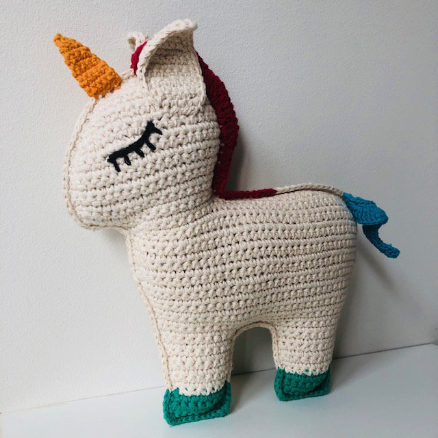 Hoi, ik ben Regenboog! Een hele lieve eenhoorn in gebroken wit met mooie regenboogkleuren en met de hand gehaakt door onze vrouwen in Kathmandu. Ik ben uniek en met liefde gemaakt!