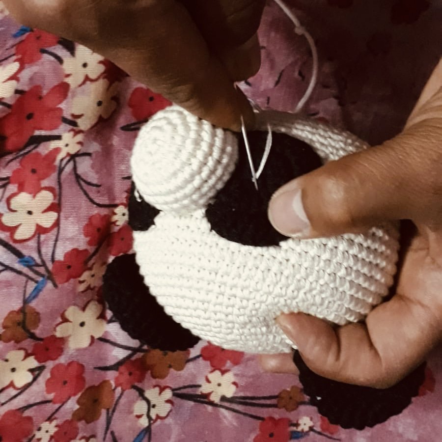 Ik ben een pandabeer die muziek maakt! Deze beer is een duurzame aanwinst voor de wieg of kinderkamer in de kleuren zwart & gebroken wit, met handig ophanglusje. De melodie die ik speel: La Le Lu. Met de hand gehaakt door onze vrouwen in Kathmandu. Ik ben uniek en met liefde gemaakt!