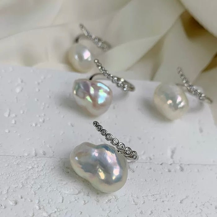 De sterlingzilveren band is elegant versierd met zirkonia van AAAA-kwaliteit, wat een vleugje sprankeling toevoegt aan dit luxueuze ontwerp. De barokparel is 13-14 mm lang en heeft een opvallende look die zowel sierlijk als modern is.