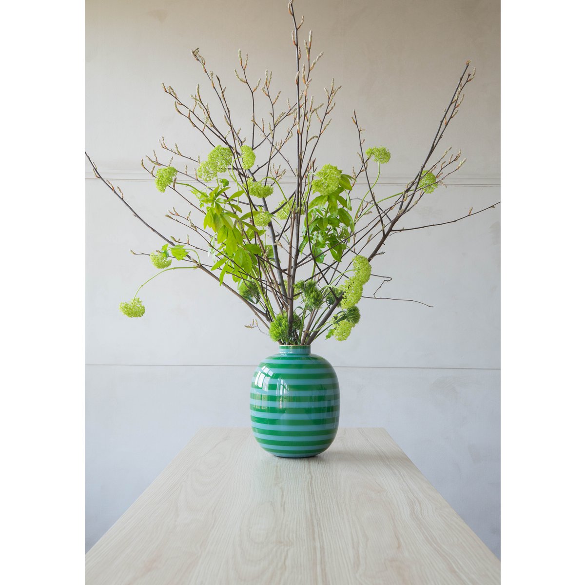 Jouw bloemen hebben er nog nooit zo stijlvol bij gestaan! Deze metalen vaas in mat glans met een stijlvol groen-zilver streepmotief is een decoratieobject op zich. Gemaakt met extra aandacht voor detail, wordt elke vaas liefdevol met de hand gemaakt, wat zorgt voor een uniek en onderscheidend stuk voor uw leefruimte.